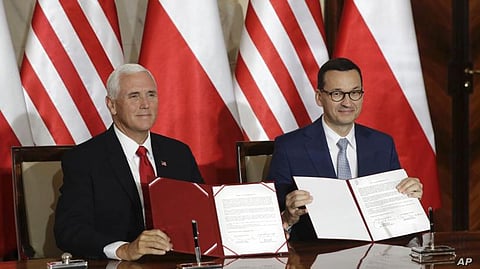 Vice President Mike Pence and Polish Prime Minister Mateusz Morawiecki signed the deal in Warsaw, where Pence is filling in for President Donald Trump, who scrapped his trip at the last minute because of Hurricane Dorian.