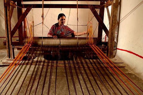 A weaver making a saree in Bishnupur, West Bengal. Image Source: Wikimedia Commons
