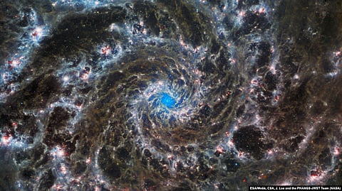This image from the NASA/ESA/CSA James Webb Space Telescope, Aug. 29, 2022, shows the heart of M74, otherwise known as the Phantom Galaxy.