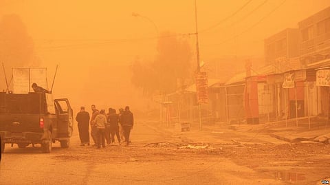 About four meters away, Iraqi soldiers fire mortars over a brick wall behind which Islamic State militants had retreated a few days ago after a brutal battle. A thick fog engulfs the city and soldiers tell us the weather is an IS tool. In the fog, they say, airplanes can't see militants so the fighters can move forward unnoticed.