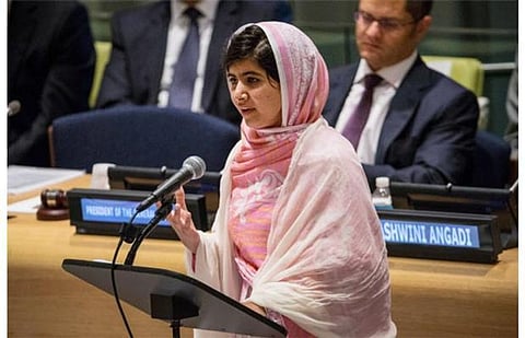 United Nations: Last year's Nobel Peace Prize winner and activist for female educational rights, Malala Yousafzai, spoke at the United Nations General Assembly from a gallery lit in blue.