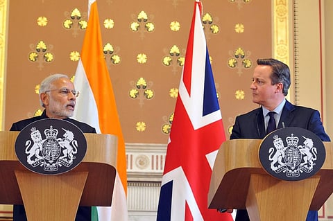 But, I want to remind you, Mr. Prime Minister, that you owe me royalty for an election slogan. I know that you are hosting me at the Chequers this evening. But, I also know that you will understand if I am fair to both sides of the floor. Especially since British MPs of Indian Origin are evenly balanced between the Treasury and the Opposition benches. So, I also extend my good wishes to the Labour. Indeed, since these are still early days after the election, my warm congratulations to the Members of the House. And, greetings to the eminent leaders of Britain and great friends of India present here today.