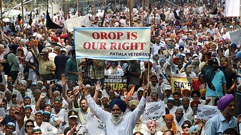 New Delhi: Thousands of army veterans, who organised a rally on Saturday at Jantar Mantar, unanimously rejected the 'One Rank One Pension' (OROP) scheme approved by the government and threatened to intensify their agitation if the scheme's anomalies were not removed.