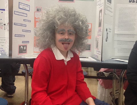 Jadan Toribio was enthusiastic about portraying Einstein because "I got to dress like him and found out he discovered the theory of relativity."