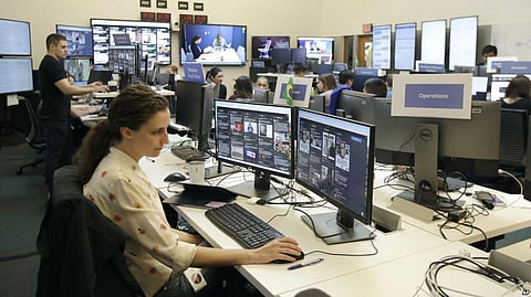 A man works in the war room, where Facebook monitors election-related content, in Menlo Park, Calif. VOA