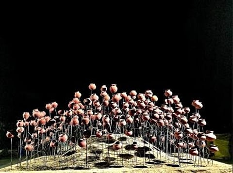 Using materials like terracotta and iron — the former being earthen and latter, known to be sturdy, signifying the agriculturist's close relationship with the earth and undying spirit, he says, "If you look at the structure, it might look fragile, but it is actually quite well-built. It resonates with the protesting farmers. They might appear poor, weak, and helpless, but we have seen the strength of their resolve," says the artist about the installation that was completed on April 14.