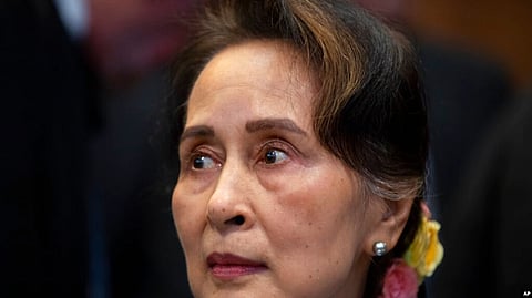 FILE - Then Myanmar's leader Aung San Suu Kyi waits to address judges of the International Court of Justice in The Hague, Netherlands, Dec. 11, 2019. (AP)